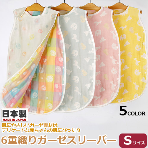 日本製 6重織りガーゼ スリーパー Sサイズ 6重ガーゼ ガーゼスリーパー 6層タイプ オールシーズン パジャマ 寝具 通気性 吸水性 速乾性 寝汗 赤ちゃん ベビー キッズ お子様 フジキ
