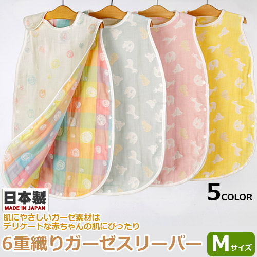日本製 6重織りガーゼ スリーパー Mサイズ 6重ガーゼ ガーゼスリーパー 6層タイプ オールシーズン パジャマ 寝具 通気性 吸水性 速乾性 寝汗 赤ちゃん ベビー キッズ お子様 フジキ