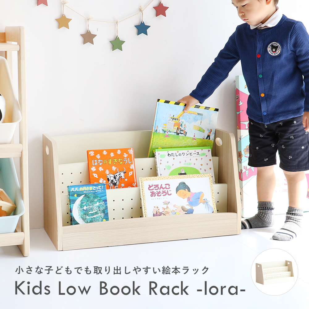 キッズローブックラック -lora- [ILR-3579] キッズ絵本ラック 絵本ラック ピクチャーブックラック ブックラック 絵本棚 本棚 キッズラック 木製 子供用 子供 園児 こども 小学校低学年 子供 キッズ キッズ家具 子供部屋 リビング ベビー キッズ 図書館 こども園 保育園 幼稚園 施設 こどもスペース 正規品 メーカー正規品
