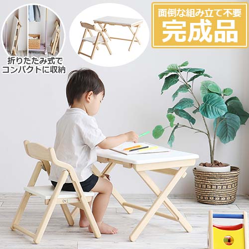収納できる折りたたみ機能付きのキッズデスク&チェアセット。