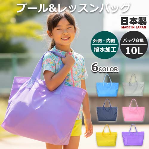 外側と内側に水が浸みこまない加工が施されているので、プールバッグとしてやレッスン(習い事)バッグの両方で使用可能!