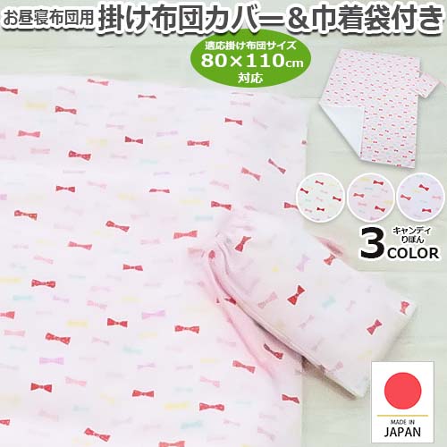 布団カバー お昼寝掛け布団カバー 巾着袋付き キャンディりぼん オックス綿 綿100% ファスナータイプ 日本製 フジキ
