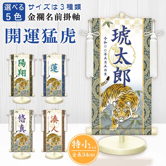モダン友禅名入掛軸 金襴名前掛軸 開運猛虎白 男の子用 男子 男児 名前旗 スタンド付き 飾り台付き 金紋 座敷旗 命名旗 命名紙 名入れ掛軸 掛け軸 名入れ お名前入れ お名前入れタペストリー タペストリー 生年月日 端午の節句 初節句 節句 節句用品 五月人形 ごがつ人形 こどもの日 脇飾り 兜飾り 鎧飾り かぶと よろい ご出産祝い お宮参り お食い初め 御祝 お祝い 記念 メモリアル 行事 贈り物 メモリアルギフト ギフト 日本製 国産