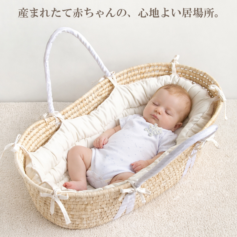 | 説明 | ナチュラルなかごのクーファンと周りのバンパーのセット。 (底にクッションはついておりません) たまごマットおくるみがぴったり入ります。セット使いがオススメです。