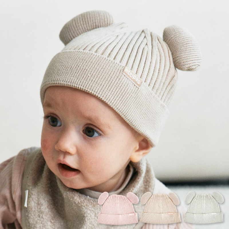アティパス ビーニ 耳付き 赤ちゃん 冬用 帽子 ニット帽 出産祝い プレゼント ギフト 女の子 男の子 ベビー くすみカラー Attipas