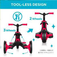 お子さまの成長に合わせて4つのモードに変形する機能的な3輪車。