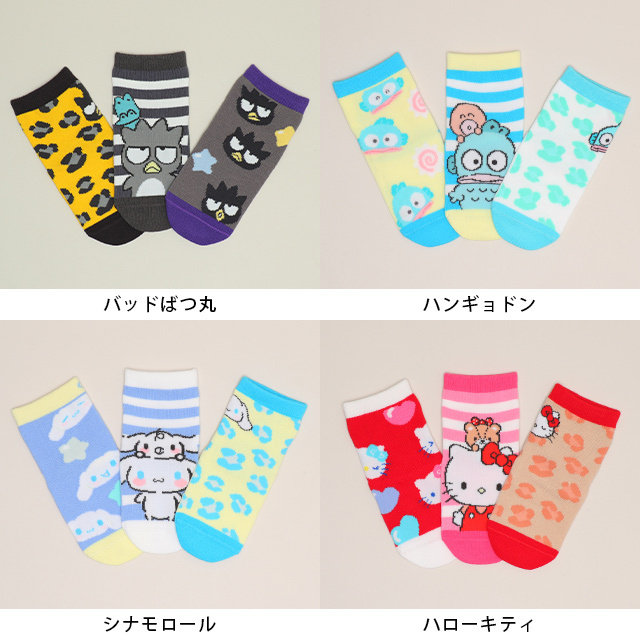 ハローキティ キティちゃん シナモロール クロミ マイメロディ ハンギョドン バッドばつ丸 ベビーサイズ キッズ ジュニア 女の子 雑貨 靴下 こども 子ども服 くつ下 靴下3足セット 靴下3足組み 靴下3点セット 3Pソックスセット アンクル丈 くるぶしソックス スニーカー用ソックス 保育園 幼稚園 通園通学 ベーシック カジュアル シンプル おしゃれ 可愛い かわいい 春夏秋冬
