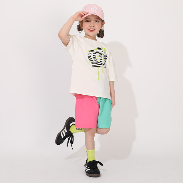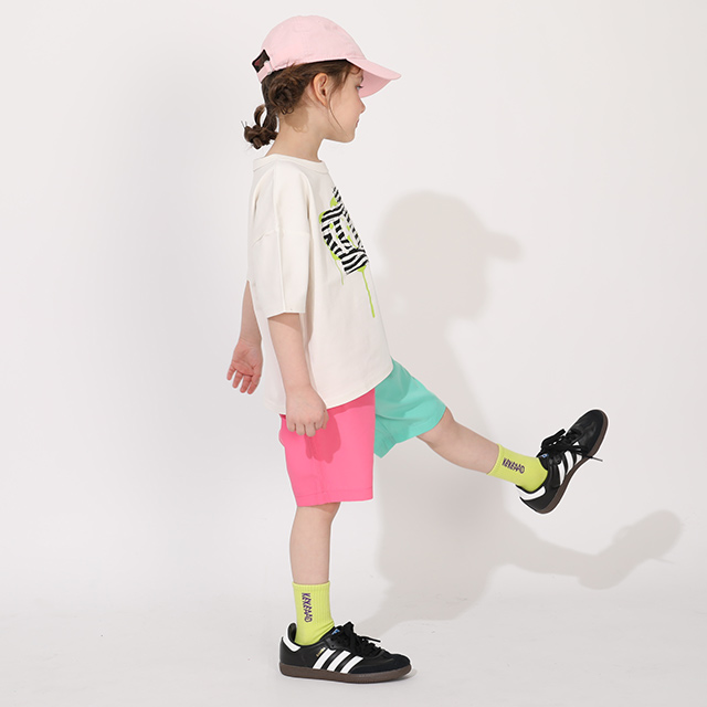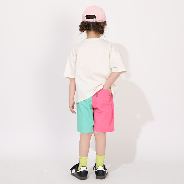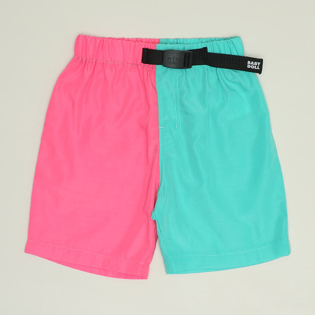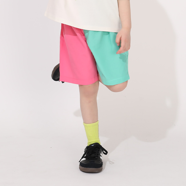 ベビーサイズ キッズ 男の子 女の子 こども 子ども服 ボトムス サーフパンツ 半ズボン ロゴ カラフル POP ポップ ベーシック カジュアル シンプル クール かっこいい おしゃれ 可愛い かわいい ヘビロテ 夏 夏休み プール 海 公園 外遊び 水遊び 配色 無地 柄なし 蛍光色 クレイジー 爆買