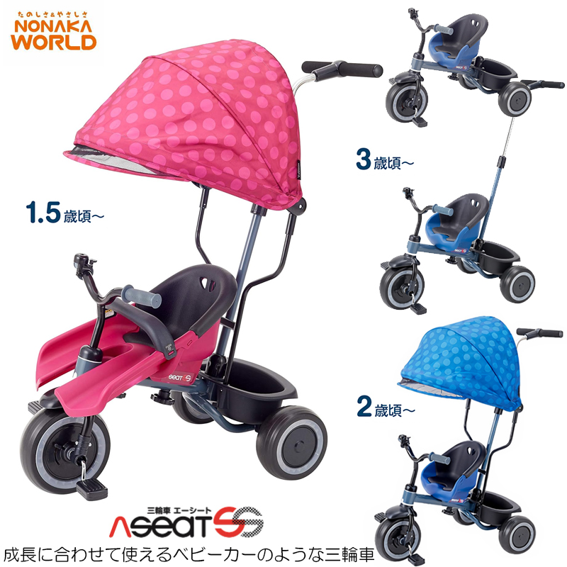 三輪車 エーシートSS 押手棒付き かじ取り カジキリ サンシェード 子供 幼児から ベビーカー シンプル 1歳半 女の子 男の子 NONAKA WORLD 野中製作所