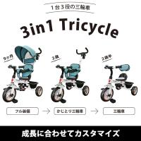 3in1 Tricycle ペールブルー JTC かじとり三輪車 押棒 シンプル オシャレ ノンキャラ