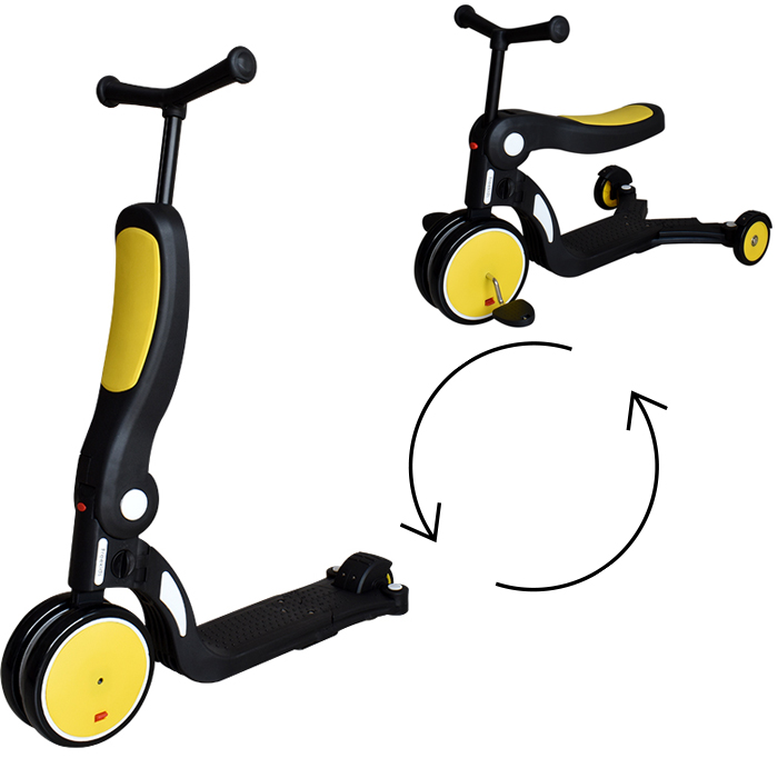 Free キッズスケーター イエロー 三輪車 バランスバイク ランニングバイク キックボード ブレーキ付き へんしん 変形 JTC