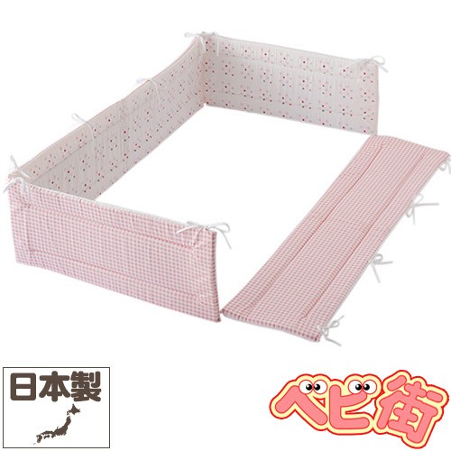 赤ちゃんが寝返りをうっても大丈夫 ♪ ●寝台サイズ:70×120cmのレギュラーサイズのベッドガードパットです。 ●隙間風や冷暖房の風から赤ちゃんを守ったり、ベッドの柵などに頭や足がぶつかるのを守ったりと重宝するベッドパットです。 ●チェック柄、ドット柄、どちらも表柄として使用して頂けます。 ●紐は上または下で結ぶタイプです。 ●ご家庭でお洗濯(手洗い)できます。 ※ベビーベッドや布団などは撮影小物です。付属いたしません。 |