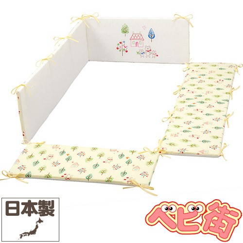 ♪森にお家があるかわいい親子クマのデザイン♪ ●寝台サイズ:70×120cmのレギュラーサイズのベッドガードパットです。 ●隙間風や冷暖房の風から赤ちゃんを守ったり、ベッドの柵などに頭や手足がぶつかるのを守ったりと重宝するベッドパットです。 ●ツーオープン(前面、横面)のベビーベッド にも対応出来ます。 ●紐は上下で結ぶタイプです。 ●ご家庭でお洗濯(手洗い)できます。 ※写真のベビーベッド、ベビー布団などは商品に含まれません。 |