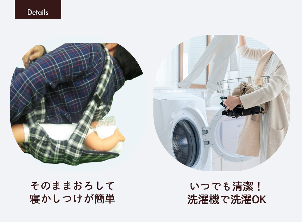 *フックを付ける位置を変えて、おんぶ用・だっこ用の2通りの使用が可能です♪