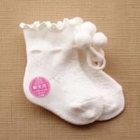 十分な伸縮性のあるソックス。かわいい梵天もポイントですよ♪