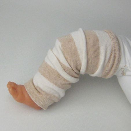 オーガニックコットン ベビー用レッグウォーマー ボーダー(生成り)