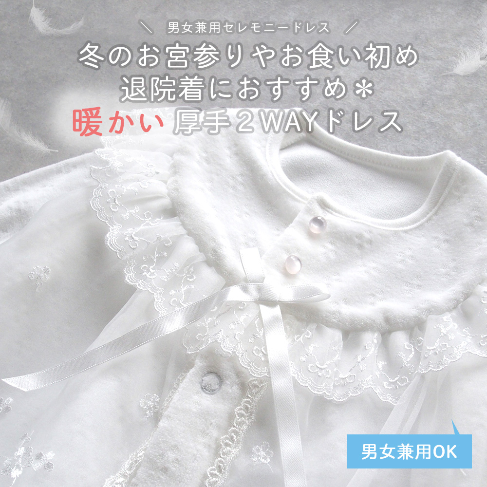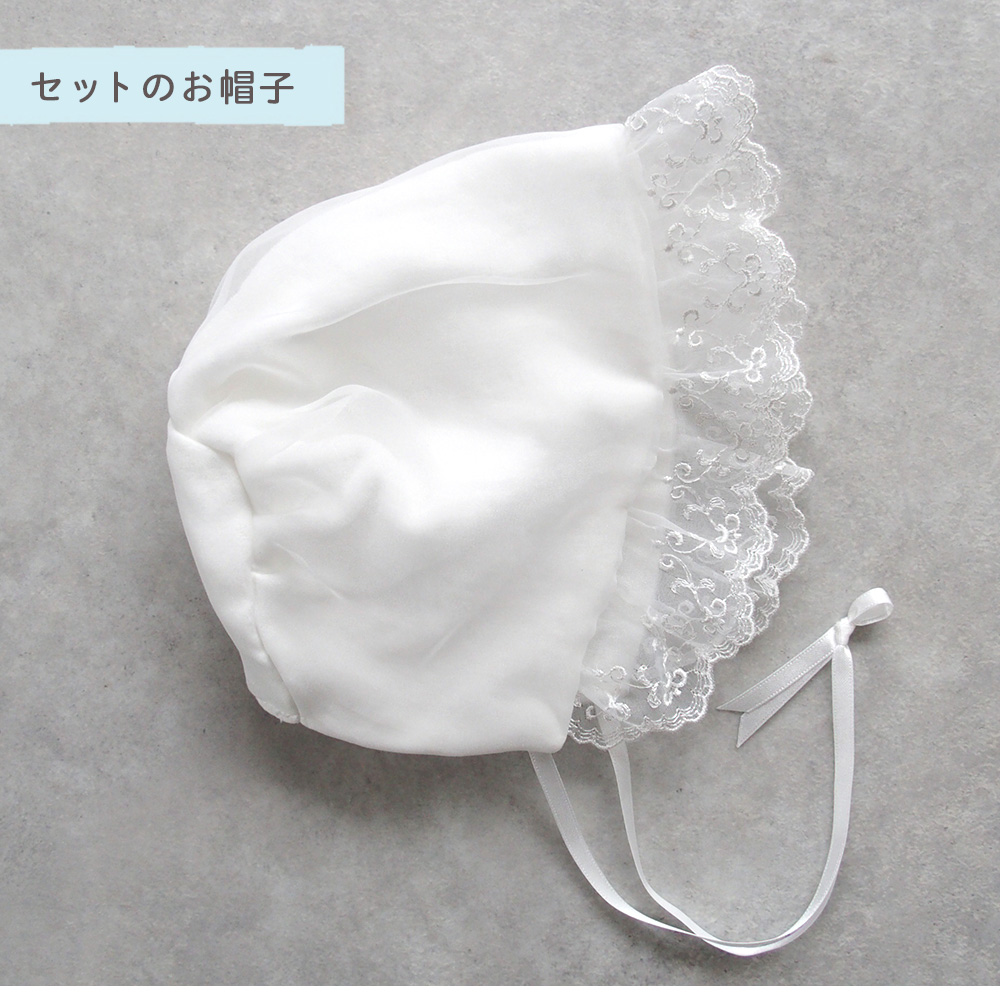 冬物 厚手素材 お帽子付き2点セット 日本製 お宮参り セレモニー用 新生児 赤ちゃん ベビードレス 退院時にも 新生児 退院 時初参り(19508)