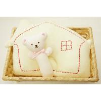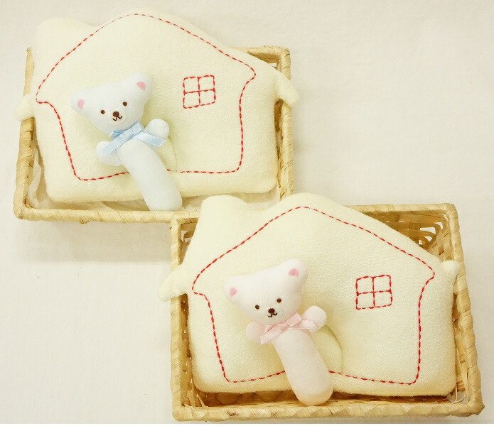 【メール便利用!送料込み】ベビー用枕HOUSE型無撚糸パイルまくらとくまさん鈴入りにぎにぎ(ガラガラ)のセット58926(日本製)(配送区分C)