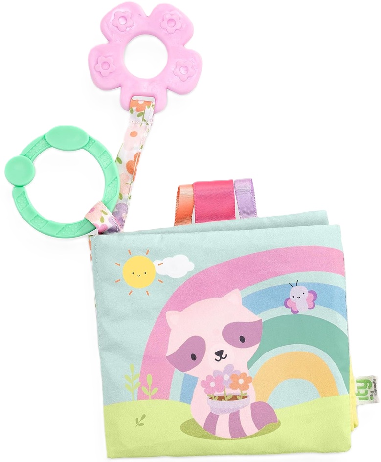 KidsII ingenuity インジェニュイティ歯固めやリボンのついた布製絵本 布えほん・たぬき【0か月〜】