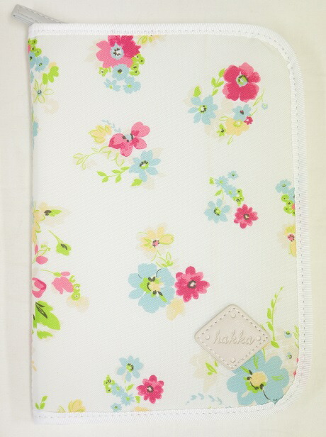 ハッカhakka インクフラワープリント(オフホワイト)母子手帳ケース(ファスナー開閉ジャバラタイプ)03030170