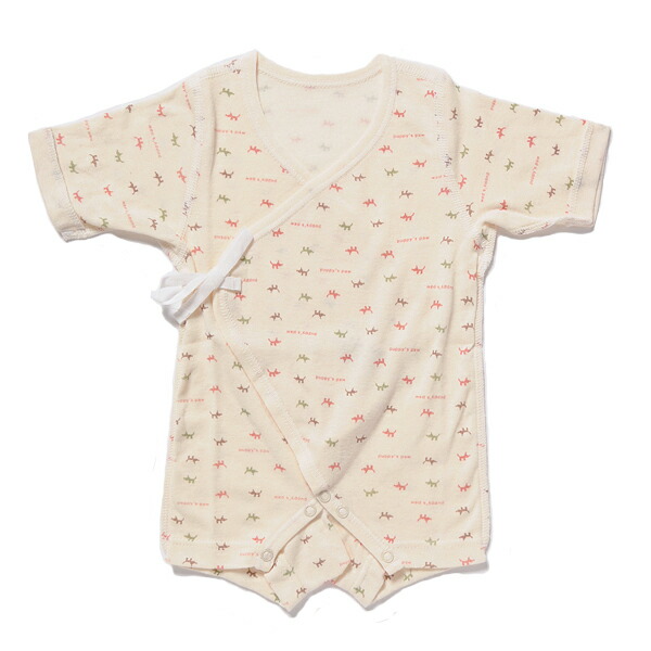 裾リングスナップ5つ、ねんねの時期の赤ちゃんに着せやすい深い打合わせ仕様です