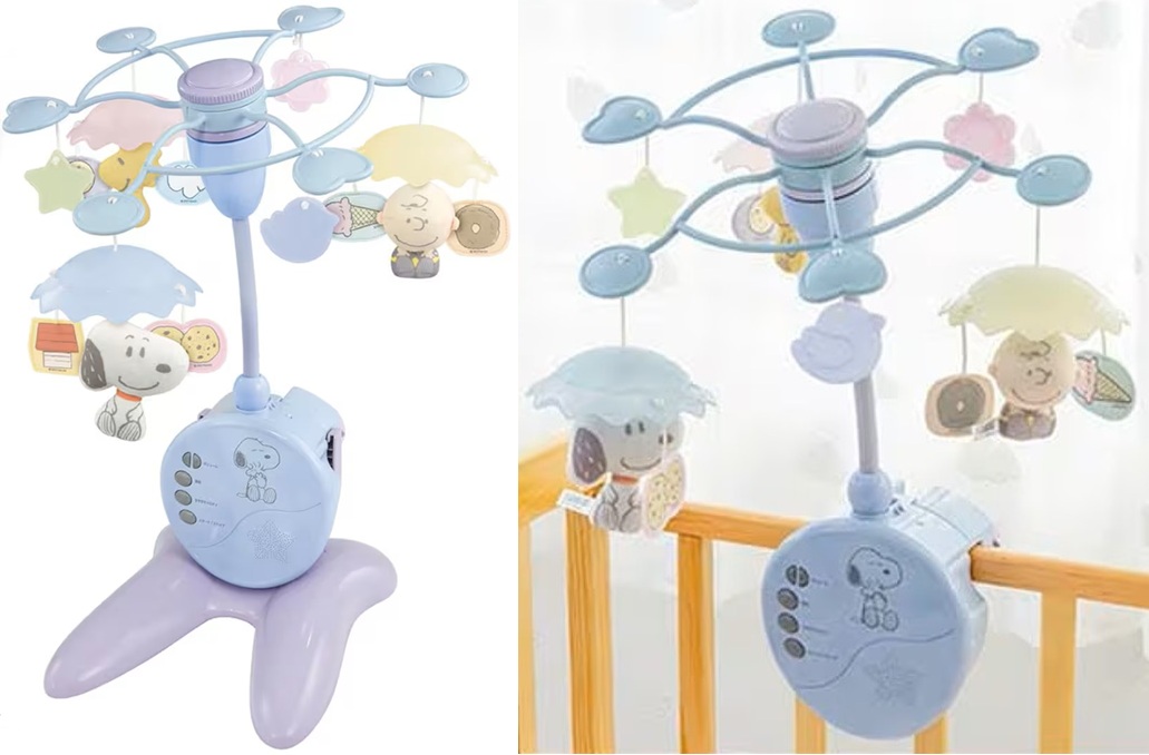 床に置いてフロアメリーの3WAYで使用可能なスヌーピーのメリー