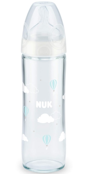 NUKヌーク プレミアムチョイス スリムほ乳びん(ガラス製)240mlくも シリコーンゴム製0-6カ月用/Mミルク(乳首)1個付き(FDNK03102152)