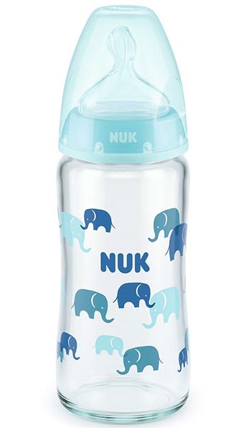 NUKヌーク プレミアムチョイスほ乳びん(ガラス製)240mlぞう シリコーンゴム製0-6カ月用/Mミルク(乳首)1個付き(FDNK10745143B)