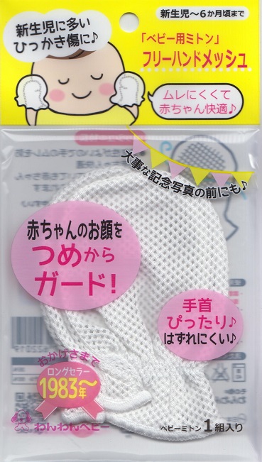 日本パフ 新生児用フリーハンドメッシュベビーミトン