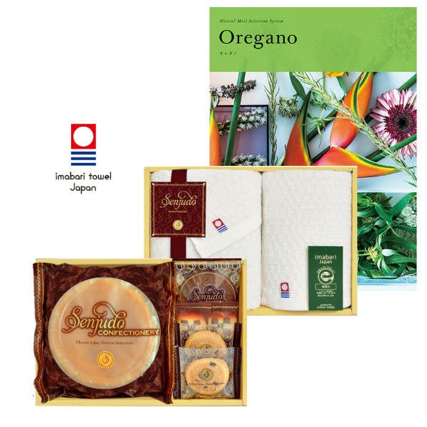 内祝い カタログギフト「オレガノ」&しっとりふわふわチーズケーキ&今治タオルの組合せギフト
