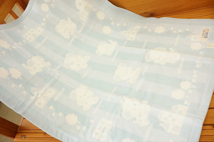 【送料込み/一部地域除く】日本製ベビー毛布わんちゃん柄 ブルー38-3002*【babbun】