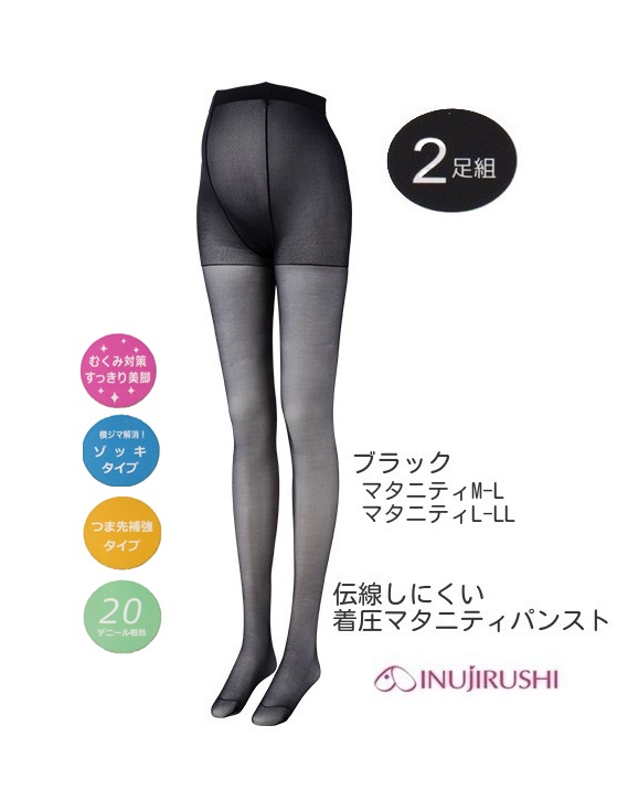 犬印【2足組】伝線しにくい着圧パンスト20デニール相当 PS6152ブラック(マタニティパンスト)M-L/L-LL