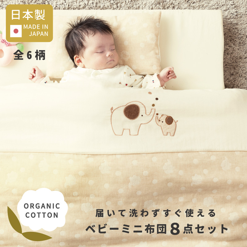 届いて洗わずすぐ使える オーガニックコットン ミニ ベビー布団セット 8点 日本製 コンパクト 洗える