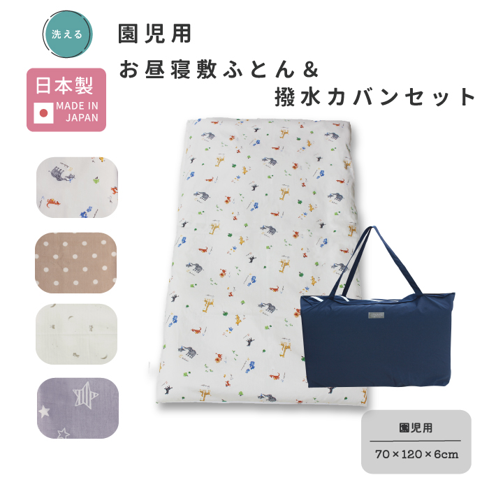 【セット商品】お昼寝 敷布団 単品 園児用 70×120 と 撥水カバン 日本製 [全4柄]