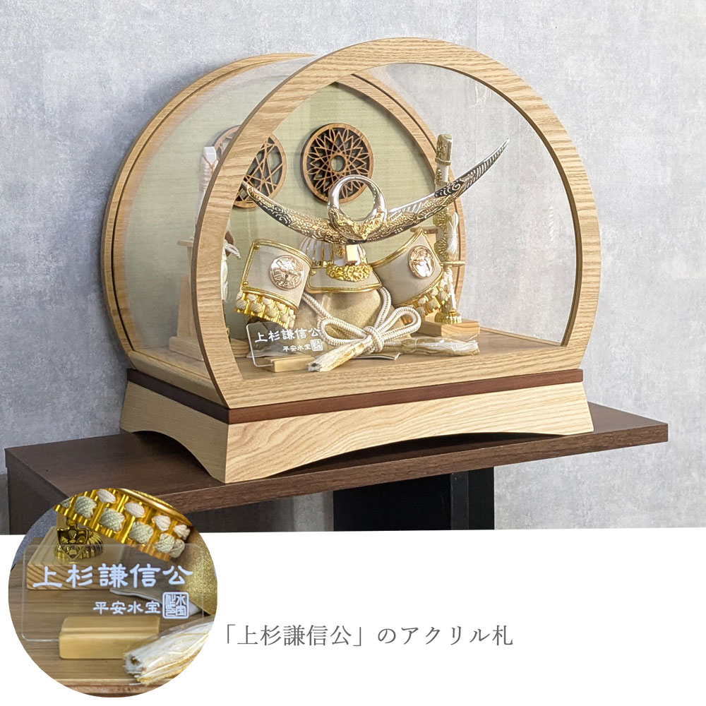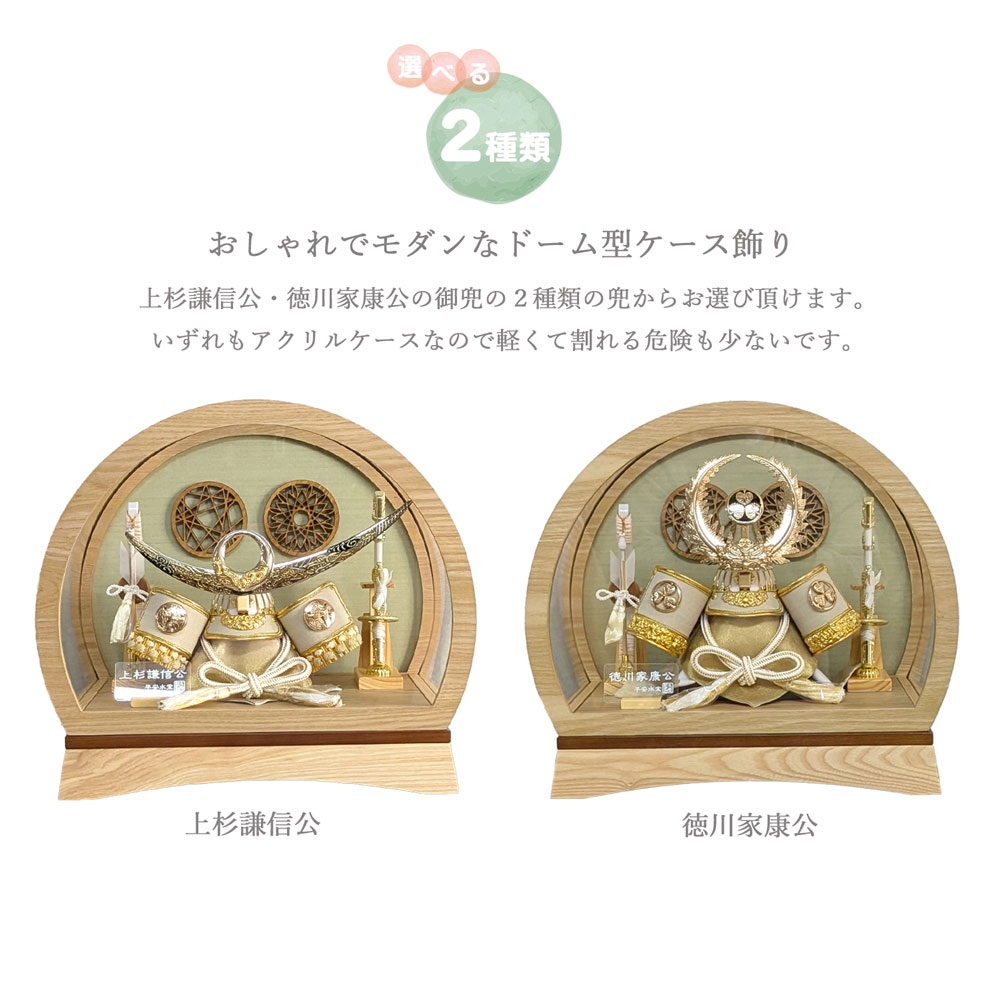 五月人形 徳川家康 上杉謙信 選べる兜 ケース飾り 兜飾り ドーム型 丸形 ナチュラル アクリルケース 端午の節句 コンパクト 簡単