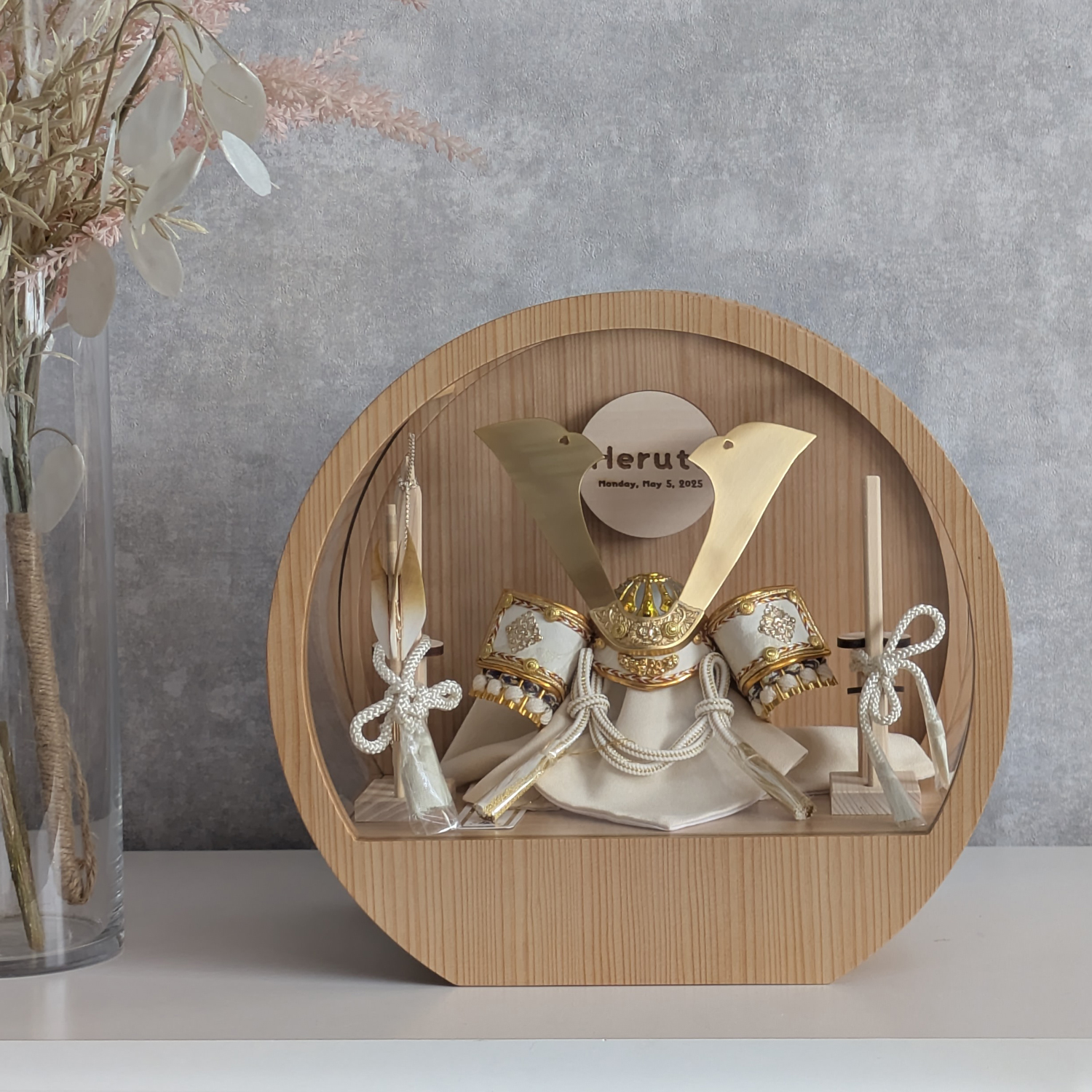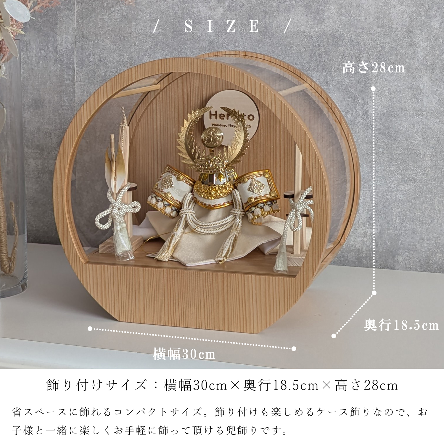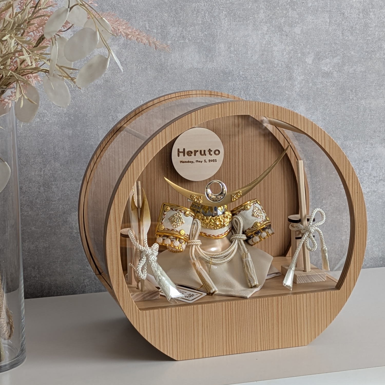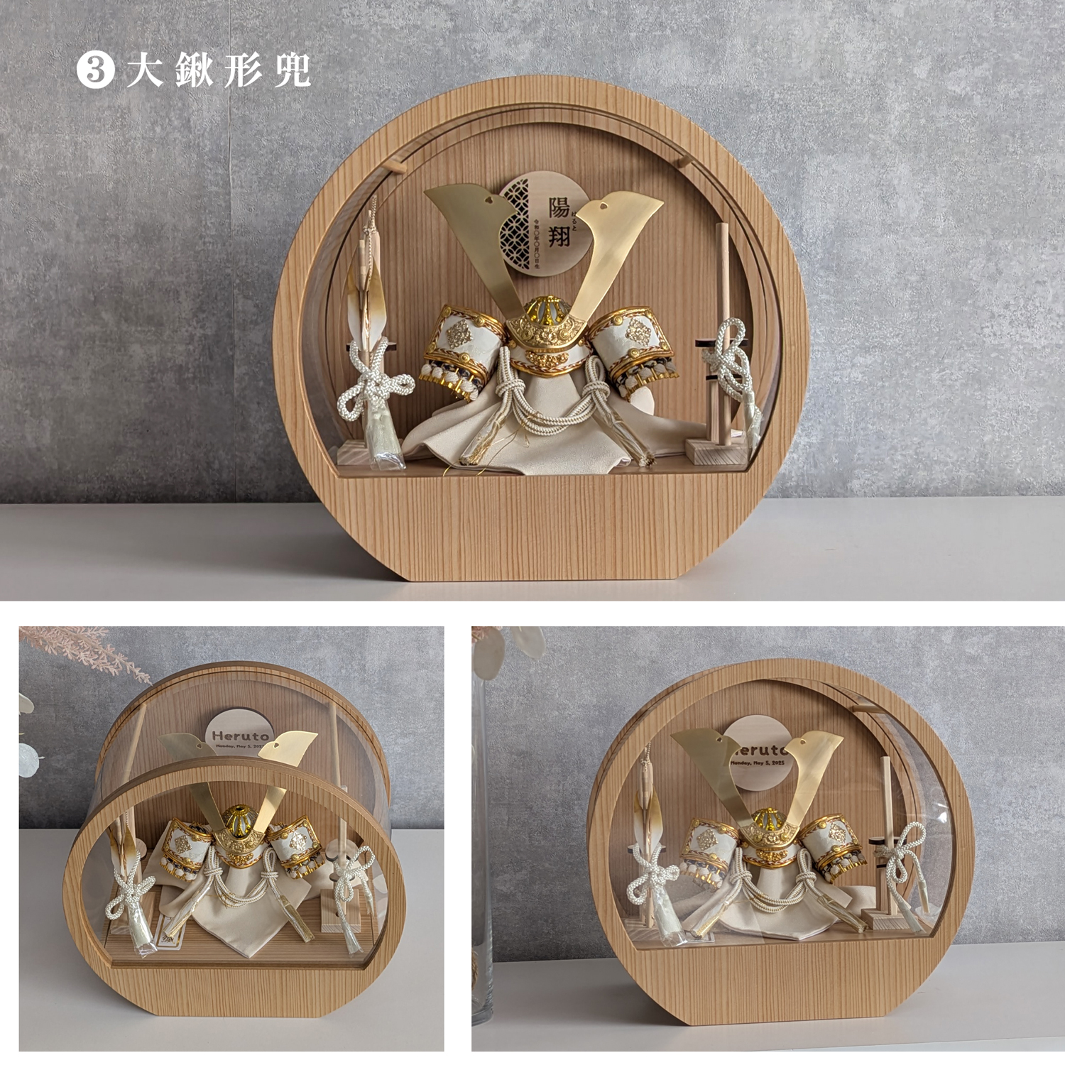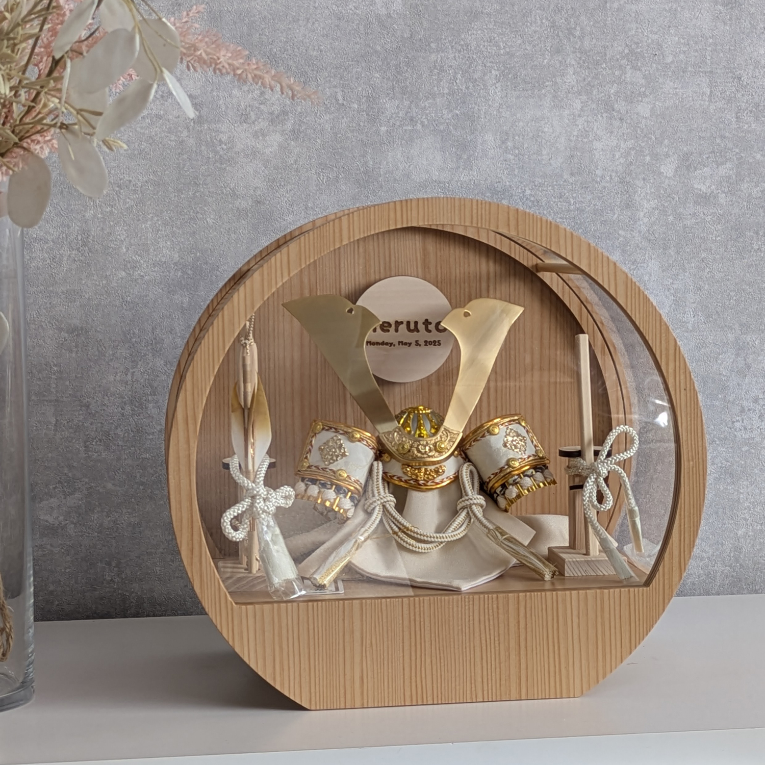 五月人形 名入れプレート付き 徳川家康 上杉謙信 大鍬形 コンパクト アクリルケース 飾れるケース飾り 兜飾り ケース飾り 間口30cm ドーム型 丸型