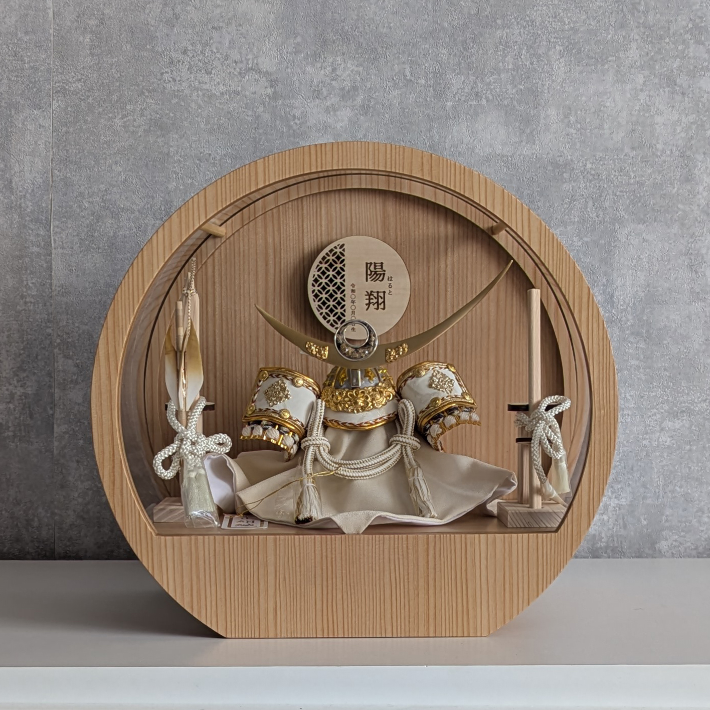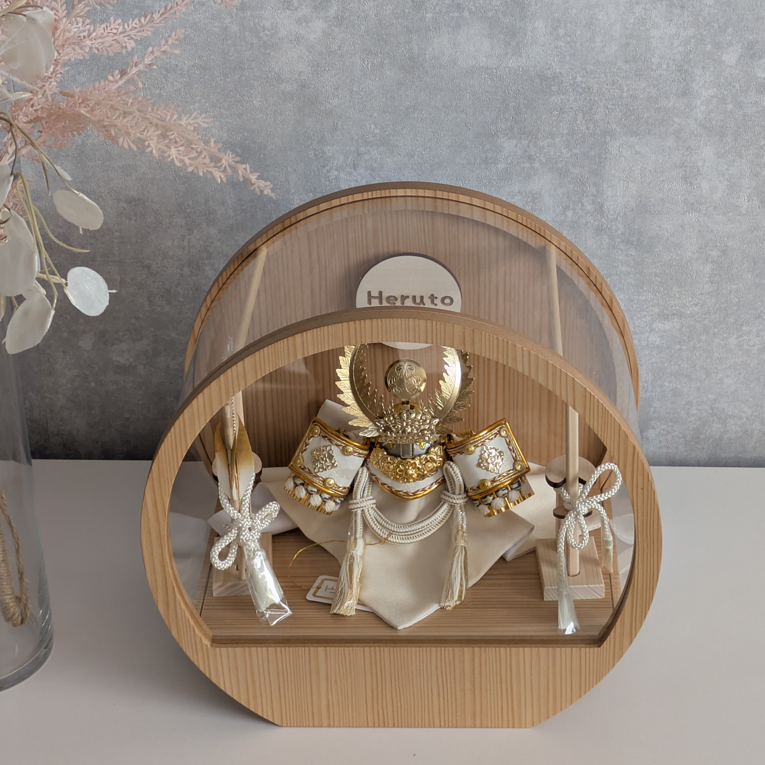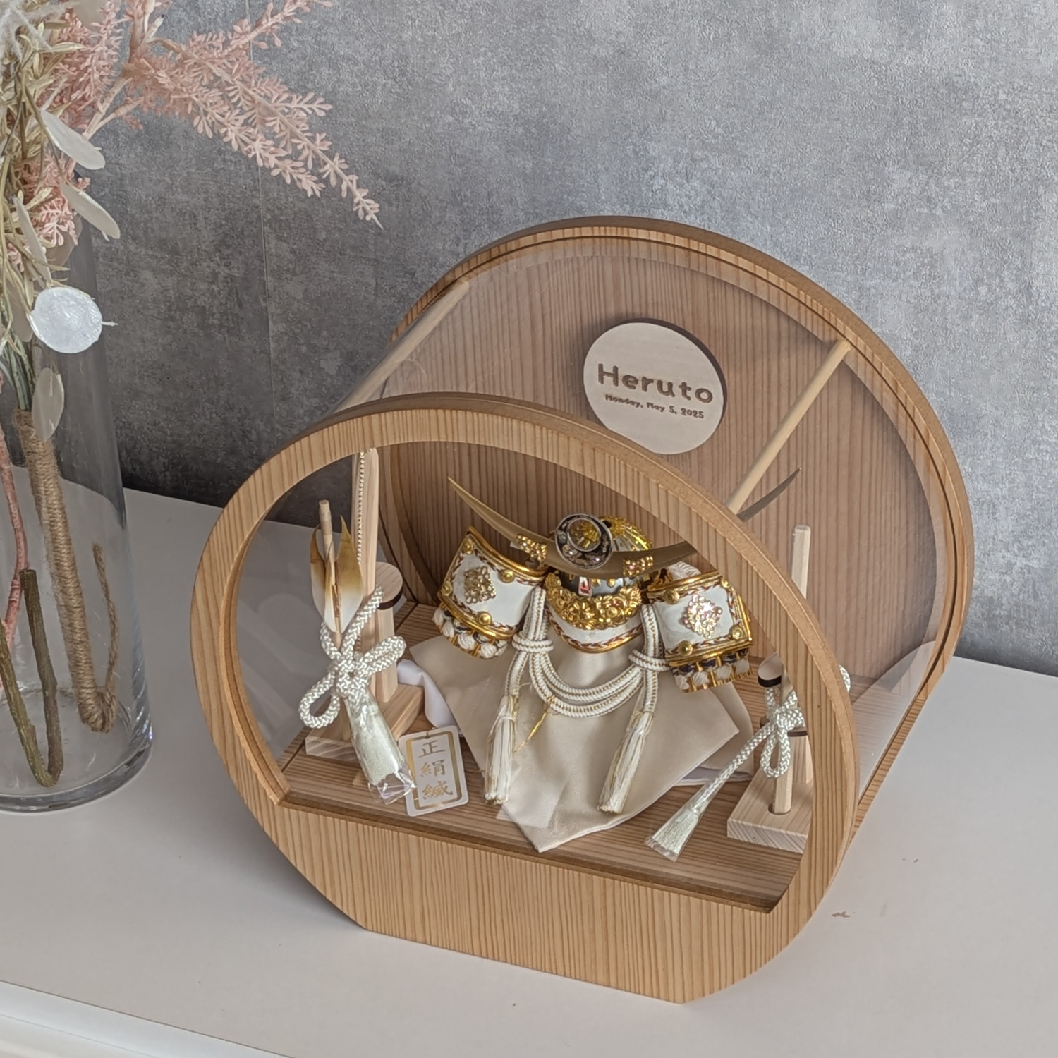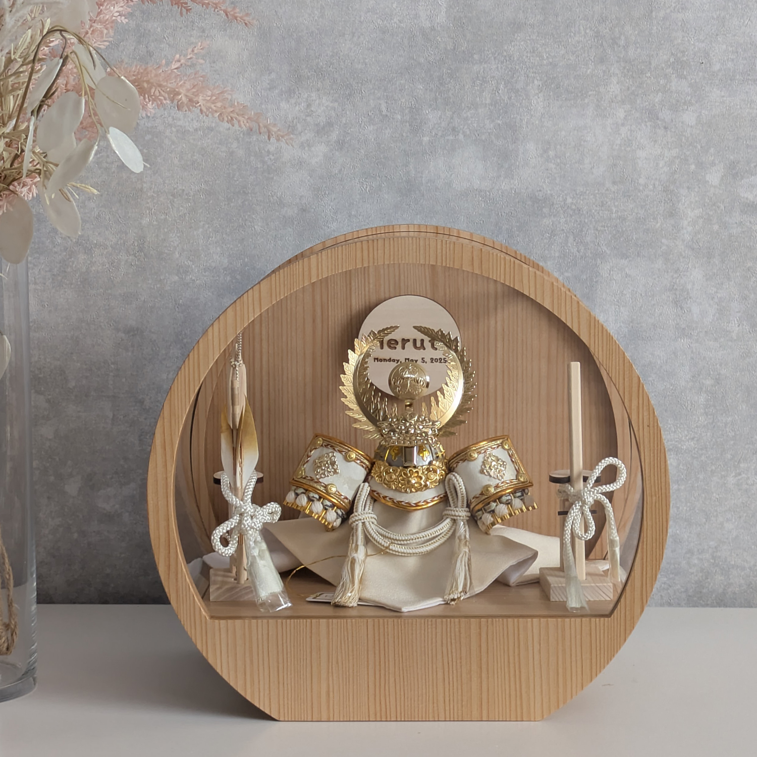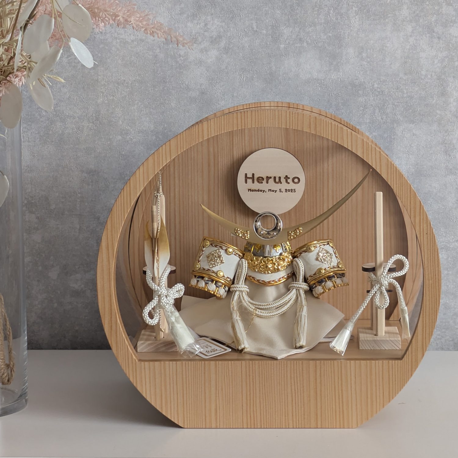 五月人形 名入れプレート付き 徳川家康 上杉謙信 大鍬形 コンパクト アクリルケース 飾れるケース飾り 兜飾り ケース飾り 間口30cm ドーム型 丸型