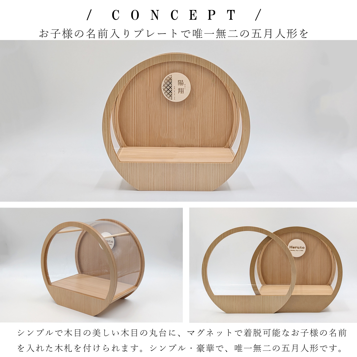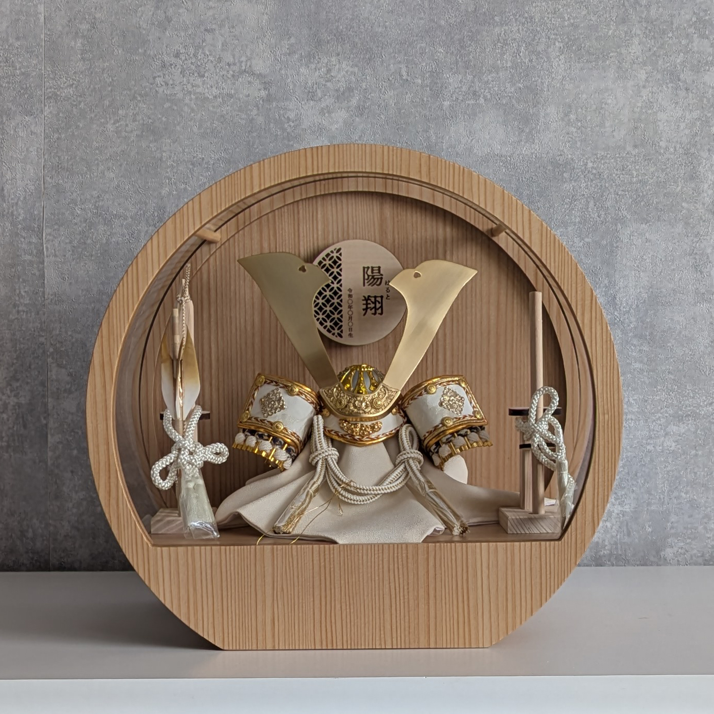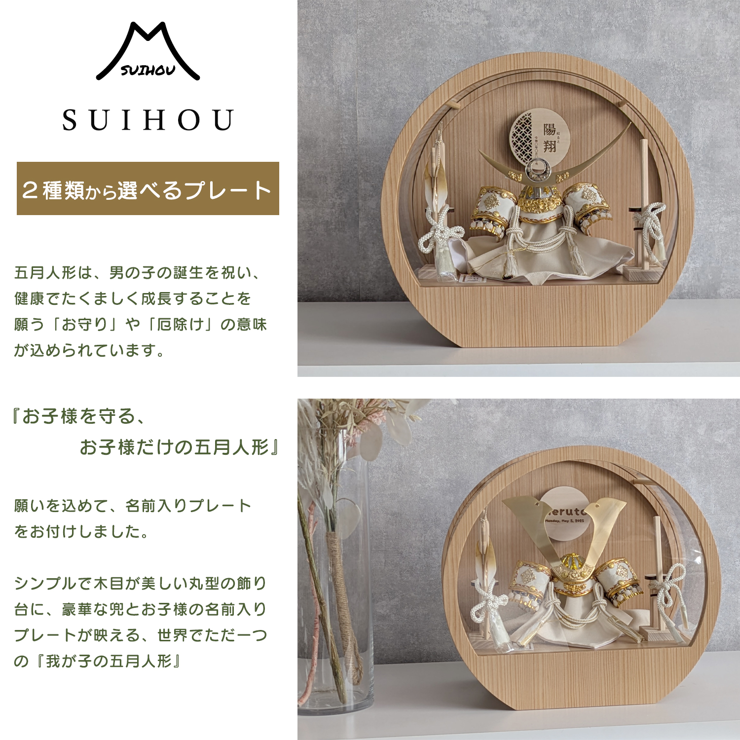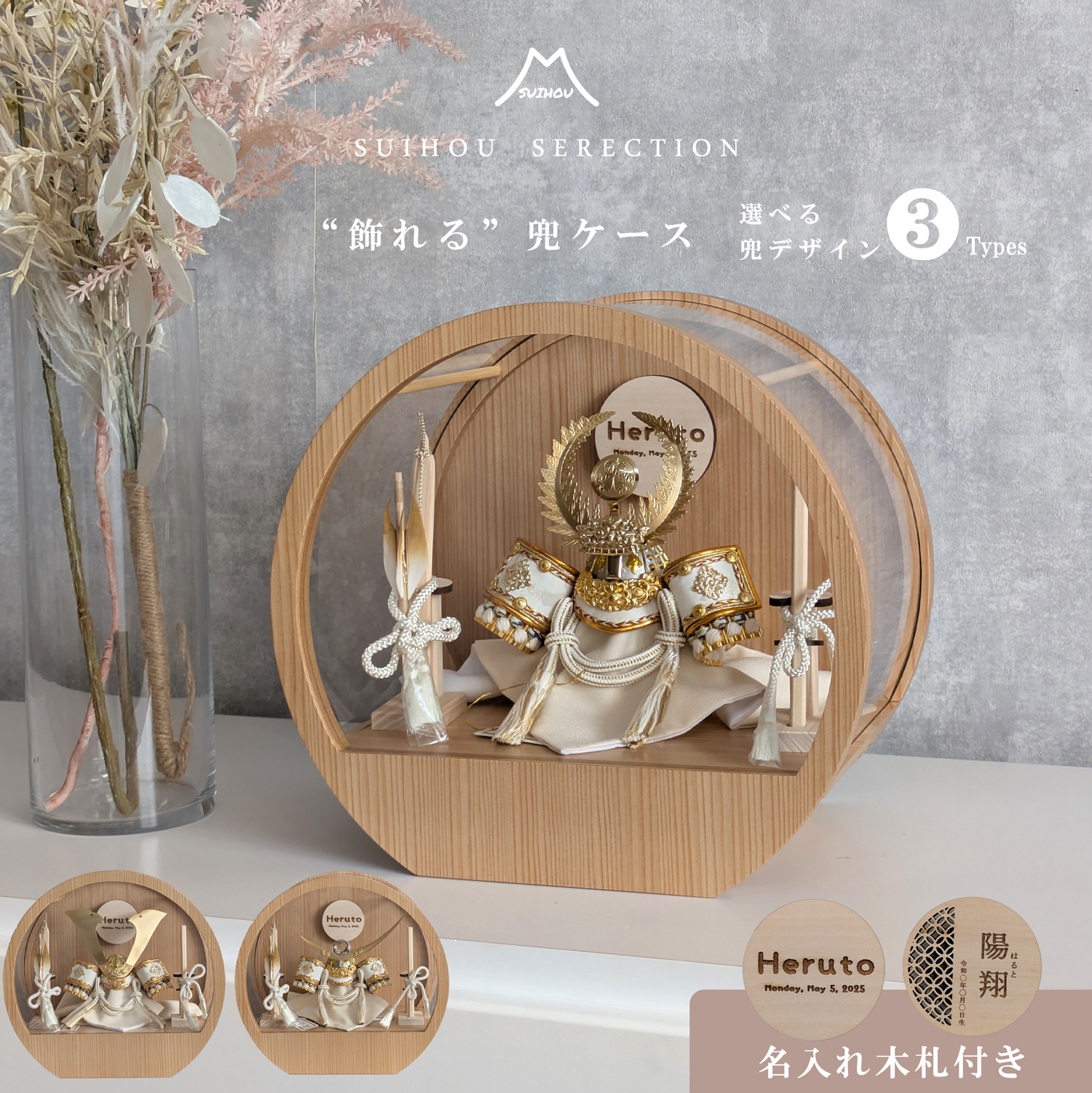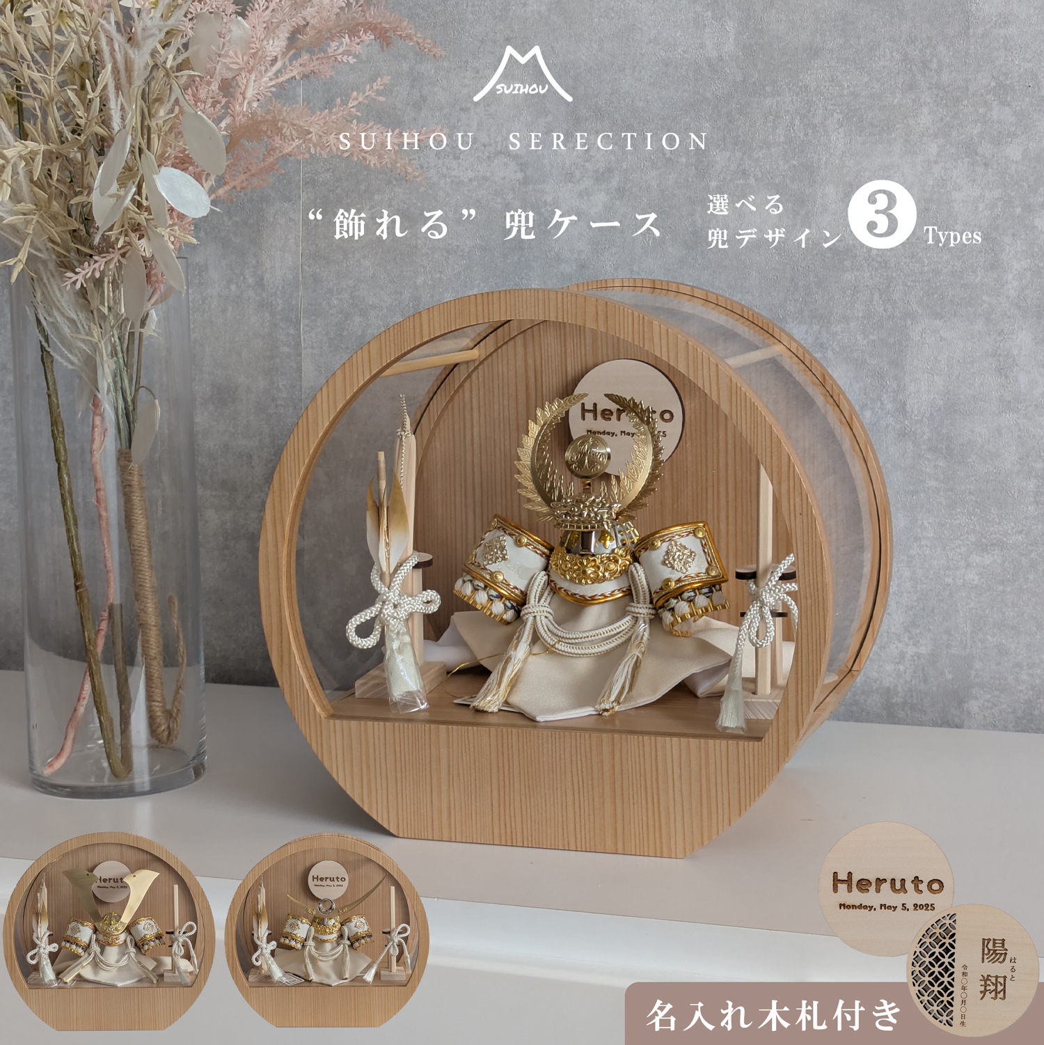 五月人形 名入れプレート付き 徳川家康 上杉謙信 大鍬形 コンパクト アクリルケース 飾れるケース飾り 兜飾り ケース飾り 間口30cm ドーム型 丸型
