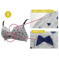 カップ裏は綿100%ふんわり綿混素材で、ノンワイヤーで締め付け感なく、とてもやさしい着け心地のブラジャーです。