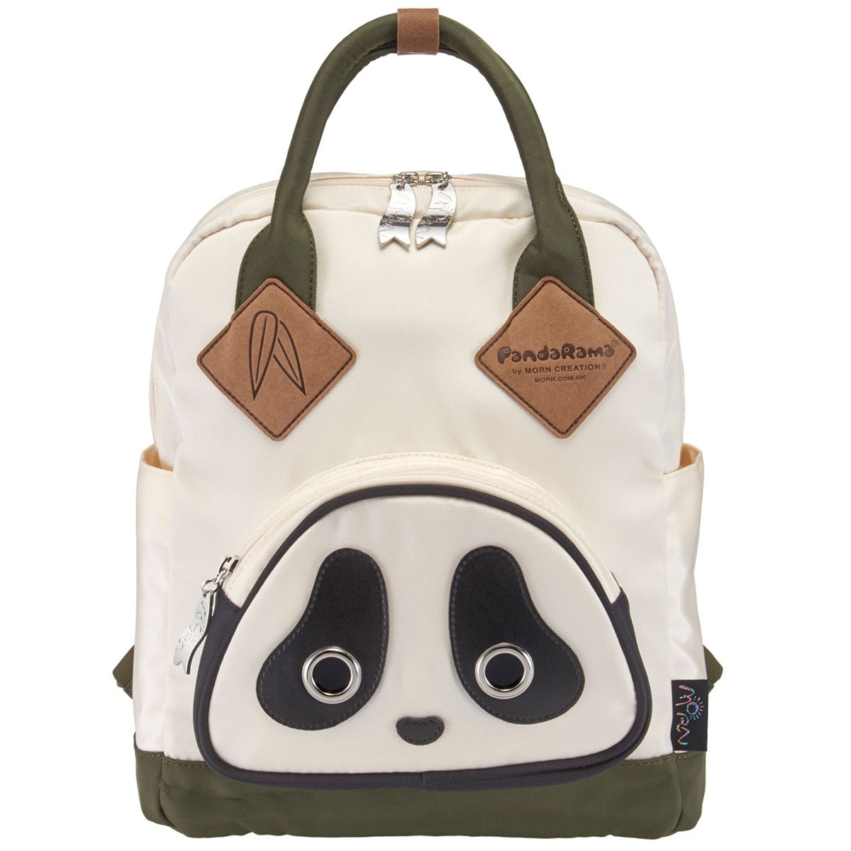 通学や普段使いにも♪スクールバッグには、パンダの顔のフロントポケット付いています。サイドポケットにもちょっとした小物も収納できて、背面には笹の葉が刺繍されています。おしゃれな色のコンビネーションもポイントです。