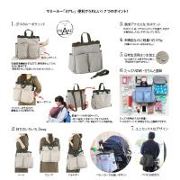 たっぷり荷物が入る大容量。11個のポケットで荷物をきちんと整頓できるのもうれしい仕様。完全防水ではありませんが、日常生活用はっ水加工で普段使いに便利。前側のルーポケットは消臭抗菌加工を施してあり、使用後のオムツ入れとしてお使い頂くと衛生的!持ち方いろいろ3WAY、本体は軽量約630g!オススメのマザーズバッグです。
