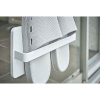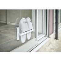 雨や風を避けてベランダスリッパを室内の窓や扉に吸盤でつけて、簡単収納できる、TOWER ツーウェイベランダスリッパラック。ベランダの外側に取り付けても便利です!付属の木ネジで壁にも取り付けできます。