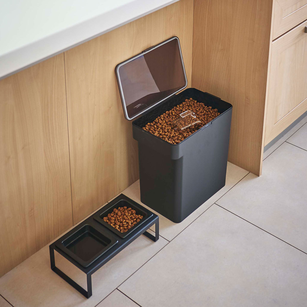 リビングやキッチンにそのまま置けるスタイリッシュなペットフード保存容器、TOWER 密閉ペットフードストッカー 6.5kg 軽量カップ付き。蓋をパチッとロックしておけば、湿気・酸化・臭い漏れを防いでくれる優れもの。180mlまで測れる計量カップ付きでお届けします。