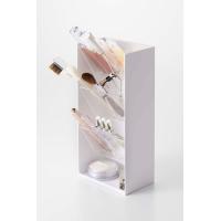 洗面周りにコスメをまとめて収納、TOWER コスメ立体収納ケース 4段。トレーは差し込むだけの簡単取り付け。トレーが透明のため、中身が見やすく整理も簡単。メイクブラシ・リップ・アイライナーなどを取り出しやすいように斜めに収納できます。