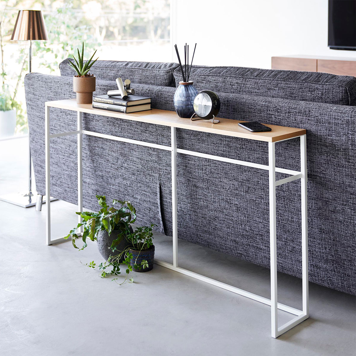 tower ソファー裏コンソールテーブルは、美しさと機能の調和が魅力です。スリムでワイドなデザインがデッドスペースを魅力的なスペースに変え、フック付きでブラシなどを便利に収納。本やオブジェ、フレグランス、植物など、お好みの小物を飾り、リビングやダイニングを素敵に演出します。