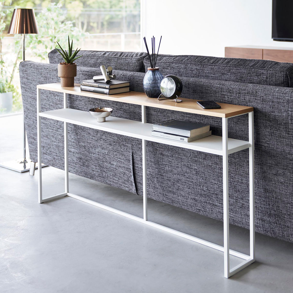 デッドスペースを有効活用するスタイリッシュなコンソールテーブルです。ソファー裏に飾り棚やちょい置きスペースとして追加でき、棚付きで便利にお使い頂けます。リビングとダイニングの区切りにも最適。お好みの小物を配置でき、スペースを魅力的に変身させます。