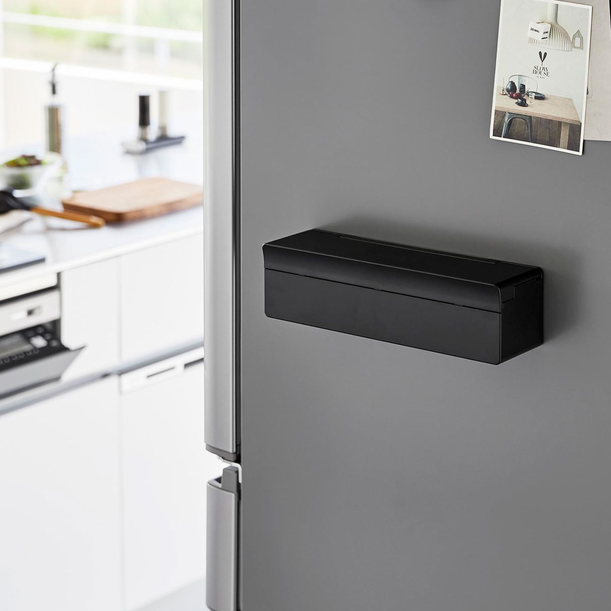 マグネットで簡単に取り付けできるまな板シート専用ケースです。市販のまな板シートをケースのまま収納でき、壁につけたまま、まな板シートをカットできます。冷蔵庫やキッチンパネルなどのマグネットのつく壁面に簡単取り付け。