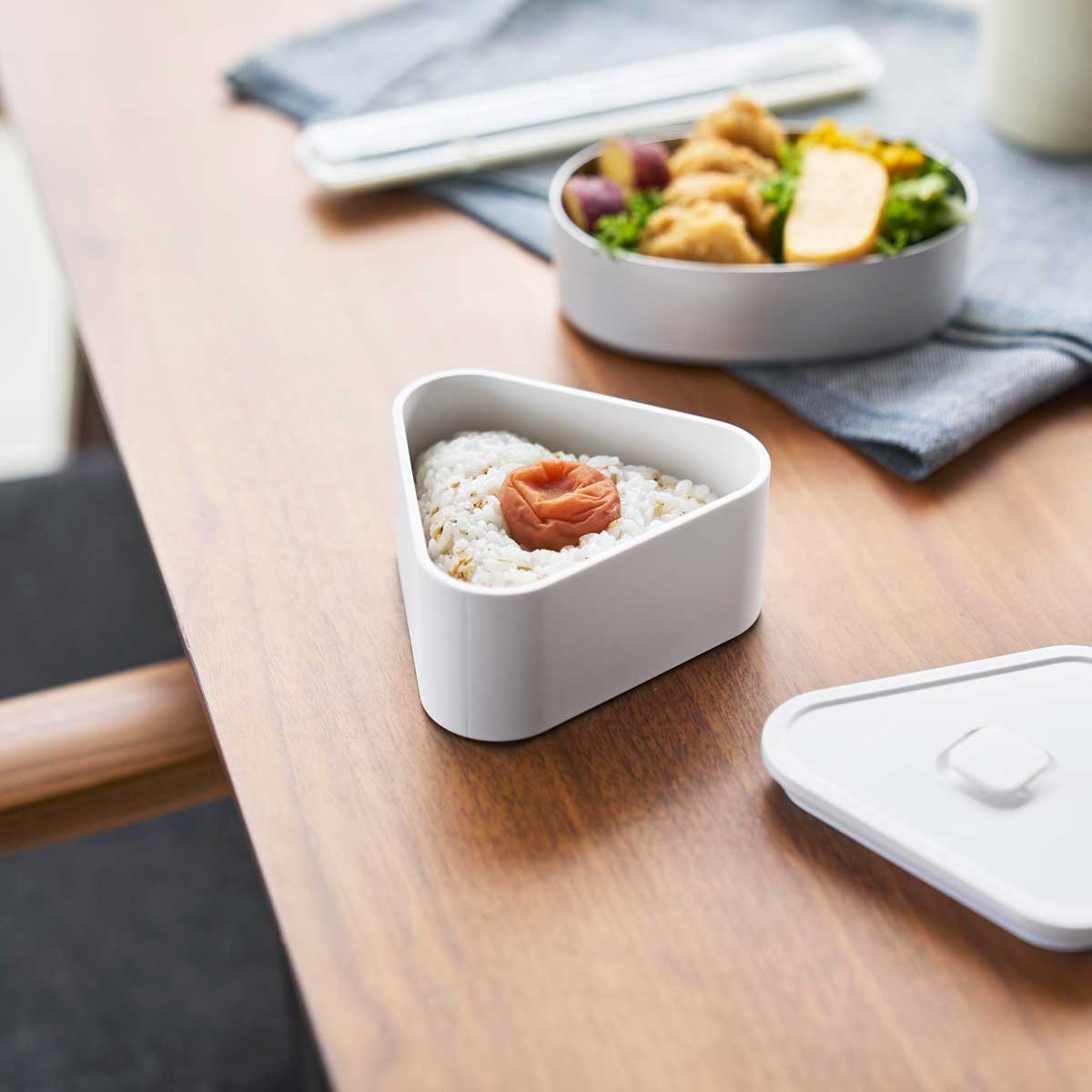 おにぎりを崩さず持ち運べる、密閉おにぎりケース。手作りのおにぎりやコンビニのおにぎりが、ちょうど1個入る大きさのおにぎりケースです。