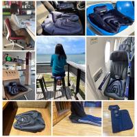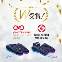 Travelはコンパクトなサイズで十分なサポートを実現する為にポンプ部分(座骨が乗る膨らみの部分)を小さくしました。仙骨を支える部分も独立した形状にする事により、コンパクトな形状で持ち運びに便利!小さければ最短の時間で膨らませる事もでき、小さな椅子にも納まり易い。まさに持ち運びに便利な形状にする事でTravelと名付けました。