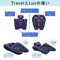LuxはTravelのサイズ感だとお尻がはみ出て不快に感じる人の為に考案しました。長時間座ると少しの不快は大きな不快になります。そこでお尻が大きな人でも十分に包み込みながら骨盤をしっかり支える形状に設計しました。側面や後ろ面の支える部分を大きくするという事は座骨が乗るポンプの役目をする部分の体積も大きくしないと十分な膨らみと圧を側面と後ろ面には掛けられません。という事でポンプの役目部分の体積も大きくなる様に作りました。また、骨盤の側面と後ろ側が大きく膨らみ骨盤をサポートするため、傾斜角度と骨盤全体を後ろ側から前方へ押し出す力も大きくなります。そしてお尻が前にズレ易くなります。そこでTravelとは違い、滑りにくいズレ防止のシリコンを表面に施しています。Luxはお尻が大きな人でも十分に包み込みながら骨盤をしっかり支える形状が特徴の商品です。